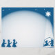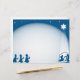 Cena de natividade de Natal simples em silhueta azul e branca. Fácil de personalizar e adicionar seu próprio cumprimento de Natal ou versículo das escrituras no espaço. Imagem disponível em vários presentes e produtos.