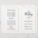 Este programa é uma página 8.5 x 11 que requer que você o dobre para montá-lo. A borda dourada é uma imagem dourada impressa. Programa clássico de casamento preto e branco, subestimado, com um toque moderno, com a elegante escrita da palavra "Casamento" na "cobrir" externa e na fronteira dourada.