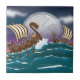 Viking Boats. Frota de invasão viking atravessando a tempestuosa caricatura oceânica.