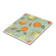 Padrão de fruta com limões, laranjas, limões e toranjas. Frutas brilhantes de citros em fundo verde-claro com placas multicoloridas de tinta.