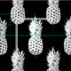 Padrão de fruta de abacaxi tropical tecido têxtil. Impressão preto e branco exótico com ícone vegetal/fruta saudável. Símbolo de comida divertida para amante de abacaxi, cozinheiro de chef, vegan, vegetariano etc. Crie suas roupas, acessórios ou decoração doméstica. Impressão com cor de fundo preta personalizada.