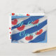 Fryslan Flag Postcard, Fryslan, Friesland, uma província bonita no norte da Holanda (Holanda) com o texto totalmente personalizável "It Giet Oan!" na língua frísio. Palavras Famosas, ditas pelo mestre do gelo depois de testar a espessura do gelo. Se o gelo for forte o suficiente, a turnê de gelo de 200 km continuará por onze cidades frísias (Elf Steden) nos canais e lagos da Frísia. Totalmente personalizável. Adicione sua(s) própria(s) imagem(s), texto se desejar! Excelente Elfsteden Kaart Card para enviar para amigos e família!