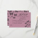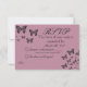 Esta maravilhosa e elegante carta de RSVP de casamento personalizada com o tema da borboleta é totalmente personalizável. Apresenta borboletas fuchsia e negras de flauta sobre um fundo de cor rosa ou mauve macio. Basta usar os modelos à direita da imagem do produto ou clicar no botão personalizar para personalizar e torná-la sua.