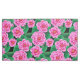 Mala-plana em um padrão de flores da camélia em tons de cor-de-rosa profundo a pastel fuchsia, contra fundo de folhas verdes de jade escura