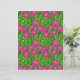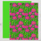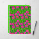 Papel em um padrão de flores silvestres cor-de-rosa-fuchsia profundas, com centros amarelos, em um campo de grama verde