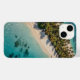 Uma visão aérea serena de uma enseada tropical com água turquesa e praias arenosas. Ideal para refrescar capas de telefone de verão.