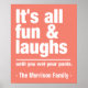 "É divertido e ri até molhar as calças". Altere o campo de texto para o que deseja. Você também pode alterar a fonte e seu tamanho e cor usando a função "Personalizar", bem como adicionar mais campos de texto, se desejar. Além disso, você pode alterar a cor de fundo deste item para qualquer cor que quiser. Veja na minha loja mais itens com este design.