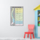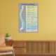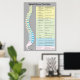 Poster da função do nervo espinhal. O poster lista os efeitos da interferência dos nervos nas áreas do corpo e os possíveis sintomas associados. Os sintomas de interferência no sistema nervoso são listados pelo nível da coluna, desde as vértebras cervicais até ao sacro.