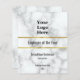 Este prêmio tem um design de mármore branco falso e um modelo de texto de exibição de cinza. Há linhas para o nome do prêmio (Mostrado: Funcionário do Ano), o nome do destinatário, o título do funcionário, o nome da empresa e o ano em que o prêmio está sendo apresentado. Todo o texto pode ser editado ou excluído. No topo, há também uma imagem de exibição que você pode substituir pelo logotipo de sua empresa. Os detalhes dourados são uma renderização artística (e não uma folha).