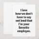 Um cartão engraçado do Dia do Chefe destaca ser o “funcionário favorito” através de mensagens engraçadas e sarcásticas. Serve como um presente de brincadeira no escritório, adequado para várias ocasiões, como promoções e aniversários de trabalho, enfatizando a apreciação entre colegas e supervisores.