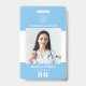 Funcionarios médico moderno ID crachá azul. Todas as cores podem ser personalizadas para se adequarem à sua paleta de cores comercial ou hospitalar. Adequado para enfermeiros registrados, assistentes de enfermagem, enfermeiros, médicos e outras profissões médicas que necessitem das suas designações claramente indicadas.