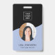 Funcionarios preto mínimo moderno Crachá de código QR de código mínimo moderno crachá de funcionarios de funcionário com foto, código QR, logotipo da empresa e nome e cargo do funcionário. Você pode personalizá-lo facilmente com seus detalhes comerciais.