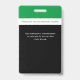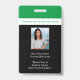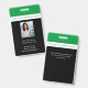 Um crachá de funcionarios profissional para professores, educadores, funcionarios do seu campus escolar. Trabalha para todos os tipos de escolas privadas, públicas, pré-escolares, elementares, segundos graus e faculdades. Tema moderno verde, branco e preto. Adicione fotos de funcionários, título de trabalho e lema escolar ou credo.