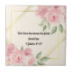 Este azulejo cerâmico apresenta um design elegante e decorativo. Ele tem um padrão floral suave com rosas rosadas delicadas e folhas verdes e peludas enfeitando os cantos superior direito e inferior esquerdo, adicionando um toque de calor e charme. Douradas linhas geométricas formam um quadro quadrado sofisticado em torno do texto central, dando ao azulejo uma aparência artística e refinada. O texto inscrito no centro diz: "Nós amamos porque ele primeiro nos amou" 1 John 4:19 Este verso transmite uma mensagem de fé e amor, fazer o azulejo não apenas uma bela peça decorativa, mas também um lembrete significativo da devoção espiritual. A combinação de elementos florais, sotaques dourados e escrituras sinceras cria um design harmonioso ideal para exibição em casa ou religioso.
