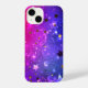 Fundo cor-de-rosa abstrato azul com pontos luminosos e estrelas.