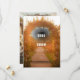 Defina o tom do seu dia especial com este cenário romântico de casamento, apresentando um pôr do sol dourado brilhante e um deslumbrante arco floral de rosas, peônias e folhagens. Perfeito para convites de casamento, cartões de "salve a data", programas ou sinalização de recepção, este design captura a magia e a elegância de uma cerimônia ao ar livre.