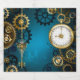 Turquesa, texturizada, fundo steampunk com latão e engrenagens douradas, chave prateada e relógio. Estilo Steampunk.