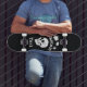 Fundo branco do skate do crânio com as folhas no vento! projete o tamanho, a colocação, e a personalização do texto disponível! Não esqueça verificar a parte superior da página para ver se há CÓDIGOS de PROMO!