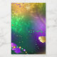Fundo de grãos de cereais, iridescentes, textualmente, com manchas roxas, amarelas e verdes, decoradas com penas e miçangas brilhantes. feriado Mardi Gras.