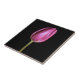 Impresso com imagem da flor cor-de-rosa da tulipa no fundo preto contínuo, isto faz um presente decorativo muito bonito e floral.