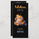 Menu de festas do Dia das Bruxas. Sorvete de abóbora do Halloween. Vidro com bebida mágica e parafernália de Halloween e lista editável de pratos. Fundo preto