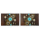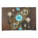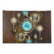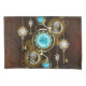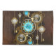 Lentes de turquesa com relógio antigo com engrenagens de latão e chaves de ouro sobre fundo enferrujado e marrom. Estilo Steampunk.