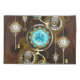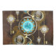 Lentes de turquesa com relógio antigo com engrenagens de latão e chaves de ouro sobre fundo enferrujado e marrom. Estilo Steampunk.