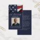 Keep the memory of a loved one close with this personalized patriotic prayer card featuring a cherished photo of them framed in faux metallic gold foil, the sentiment IN LOVING MEMORY, name and dates with an image of an American flag on the front and an editable heartfelt remembrance message on the back in navy blue. With its simple yet elegant classic design and modern script typography, it makes a meaningful keepsake to share at a funeral, memorial service or Celebration of Life and offers comfort and a lasting tribute for family and friends. Its small and portable size of 3.5x2" (wallet-sized) makes it convenient for loved ones to carry it with them as a reminder of your loved one’s life and spirit. Personalization makes each card unique.