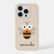 This iPhone 15 Pro Case features a cartoon illustration of funny cute smiling Bee on the honeycomb background. You can easily personalize your name using Zazzle online tools. If you need help to transfer the same design to another phone case, don't hesitate to contact me via Zazzle.