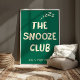 Celebrate your love for sleep with this “The Snooze Club” wall art print, a fun and relatable design perfect for anyone who always needs just five more minutes. Featuring clean, minimalist typography on a calming green background, this piece combines simple design with everyday humor.