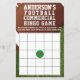 Divirta-se na sua próxima festa de futebol com convidados e cartões comerciais de bingo! Peça aos seus hóspedes que juntem tópicos comerciais em todos os seus cartões de jogo. Quando os comerciais brincam por todo o seu jogo de futebol, seus hóspedes podem apunhalar suas cartas até que alguém tenha e grite bingo! Faz uma noite muito divertida para todos! Modelo criou para você.