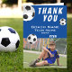 Futebol de futebol Blue Sports Obrigado Cartão de treinador com uma foto. Obrigado de futebol que você treina cartão com foto, obrigado texto, nome do treinador, nome da equipe, ano, seu nome e bolas de futebol. Dentro a placa é mais bolas de futebol. Cartões de agradecimentos de fotos - adicione sua foto ao modelo. Personalize o cartão com nomes e texto. cartões de agradecimentos excelente para o treinador da equipe de futebol!
