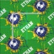 Futebol repete futebol marcando um padrão de gol no tecido do nome personalizado líquido. Azul escuro e branco com uma divisão amarela no gol com seu próprio nome em branco. A cor de fundo está verde no momento, mas pode ser personalizada para a cor de sua escolha. Ideal para adeptos de futebol e futebol. Personalize com sua própria escolha de nome, lendo atualmente Ethan. Arte e projetada por Sarah Trett.