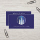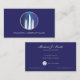 Um cartão de visita único ideal para empresas financeiras, instituições bancárias ou empresas de investimento, este cartão ostenta um design inovador de arranha-céus futuristas contra um fundo azul-noturno. Igualmente adequado para empresas comerciais do setor imobiliário.