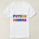 Futuro Camisas Momma, capuzes, cartões, adesivos, botões, sacos de tote, mousépias e outras roupas e presentes da Mamãe Futura com texto de cores primárias.