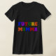 Futuro Camisas Momma, capuzes, cartões, adesivos, botões, sacos de tote, mousépias e outras roupas e presentes da Mamãe Futura com texto de cores primárias.
