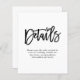 Um valor para o alternativo do ORÇAMENTO em tamanho menor de 4,5 x 5,6" de semirbrilho de 110 lbs, que é de espessura semelhante a um cartão postal (no entanto, não é adequado para uso como cartão postal). POR FAVOR, OBSERVE QUE HÁ UM convite por folha. Gabinete de Detalhes de Casamento de Código QR do Script de Orçamento. Adicionar seu código QR ao seu site de casamento no verso faz com que esta seja uma opção conveniente para seus convidados verem todos os detalhes. Você pode criar códigos QR gratuitamente on-line. Basta pesquisar "Criador de código QR" e muitas opções surgem para criar gratuitamente. Uma tendência de tipografia com motivo cardíaco em preto para o título principal Detalhes e o resto do texto que pode facilmente personalizar.
