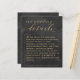 Uma elegante e sofisticada folha de detalhes do convite para casamento preto e ouro para aconselhar os convidados sobre informações adicionais não abrangidas no seu convite. Esta é uma folha de papel fina com impressionante reprodução de cores e facilita a adição ao envelope de convite quando você está incluindo placas RSVP.