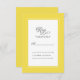 A design da placa de gabinete RSVP de detalhes de chic amarela e branca de tendências de casamento apresenta uma sofisticada borda enquadrada em amarelo iluminante que inclui uma elegante borda branca de petite. A caligrafia e a escrita são cinzas de carvão sobre fundo branco. Um modelo moderno para data e ano complementa o design único de caligrafia. Não perca as etiquetas de endereço de retorno RSVP de coordenação disponíveis em uma listagem separada.