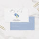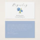 Este cartão de registro de presente com dois lados, romântico e elegante, apresenta um branco nítido na frente e um fundo azul empoeirado na parte de trás. O cartão inclui também uma ilustração azul de hydrangea floral, detalhes do repositório de registro e código de referência, bem como um site de casamento. Personalize o conteúdo do seu coração.
