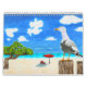 Olhe esta gaivota em uma praia ensolarada da recompensa sob o céu azul! Este calendário ajudá-lo-á a sentir o direito do sol do verão e da brisa de mar em sua mesa por todo o lado no ano. E para planear as suas próximas férias perfeitas! Será um presente agradável para todos os trabalhadores de escritório e viajantes apaixonado. Este é um marcador original art.