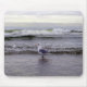 Uma gaivota solitária que está no surf na borda do oceano