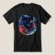 Step into a surreal fusion of myth and cosmos with this mesmerizing design featuring a cosmic black panther with glowing blue eyes, set against a dreamlike galactic backdrop. A vivid red diamond marks its forehead, suggesting ancient power and spiritual insight. Surrounding the panther, celestial patterns blend seamlessly into fiery nebulae and a serene landscape featuring a traditional Japanese temple and torii gate framed by vibrant red trees.