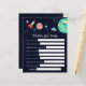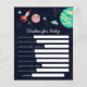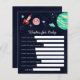 Um chá de fraldas de tema de espaço bonito quer um cartão de bebê. Ilustração de uma galáxia - foguete, estrelas, planetas. Atividade perfeita para jogar durante o chá e definitivamente será um excelente!