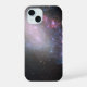 A galáxia irregular NGC 4485, localizada a 25 milhões de anos-luz da constelação de nortes Canes Venatici. O lado direito da galáxia está em chamas com formação de estrelas, mostrada na plethora de jovens estrelas azuis e nebulosas rosáceas que incubam estrelas. O lado esquerdo contém pistas da anterior estrutura espiral da galáxia, que, a dada altura, passava por uma evolução galáctica normal. A galáxia maior culpada, NGC 4490, está fora do fundo da moldura. As duas galáxias se limparam há milhões de anos e estão agora 24.000 anos-luz separados. O ninho de guerra gravitacional entre eles criou manchas ondulantes de gás e poeira de densidade do mais alto em ambas as galáxias. Essa atividade desencadeou uma onda de formação de estrelas.