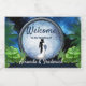 Um mago, místico, futurístico portal Galáxia, papel de carta de fantasia com buquê de flor de seda azul, violeta e branca para personalizar