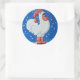 White Rooster ou Chicken se posiciona em um posto de madeira, vestindo um chapéu de Papai Noel e se abraça como se fosse uma canção. Seus pés vermelhos estão na forma de botas vermelhas. O pássaro está sobre um fundo do céu azul e caindo flocos de neve. Uma figura bem humorada, como um desenho animado, de um velho impressão de colheita em uma etiqueta de presente. Estão disponíveis vários tamanhos. Fácil de personalizar e personalizar com sua própria mensagem. Transfira o design para outros acessórios e papelaria.