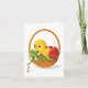 Uma design de páscoa muito bonita é esta de uma linda pintinho amarela sentada em uma cesta de ovos. Esta design fará você sorrir. É tão cheio de gentileza páscoa. Esta galinha e os ovos na design de cesta parecem excelentes nestes cartões