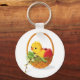 Uma design de páscoa muito bonita é esta de uma linda pintinho amarela sentada em uma cesta de ovos. Esta design fará você sorrir. É tão cheio de gentileza páscoa. Esta galinha e ovos na design de cesta parecem excelentes nesta chaveiro. Perfeito para si mesmo ou como presente