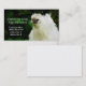 Este cartão de visita de travamento do olho caracteriza um golpe, retrato fotográfico brilhantemente colorido da galinha poedeira emplumada branco da galinha de um fazendeiro da galinha. É especialmente bonito ao lado das folhas verde-clara e de um fundo escuro. Aperfeiçoe para todo o negócio relativo aves domésticas tal como os ovos, os pintinhos ou as frangas, os pássaros etc. da carne. Ambos os lados são inteiramente customizáveis com sua própria informações de contacto profissional ou pessoal. Design similar disponível com informações de contacto na parte traseira